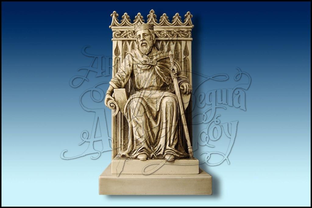 Figura representativa de Rey Cristiano, sentado con trono y respaldo. Se puede utilizar como figura decorativa o apoyalibros.