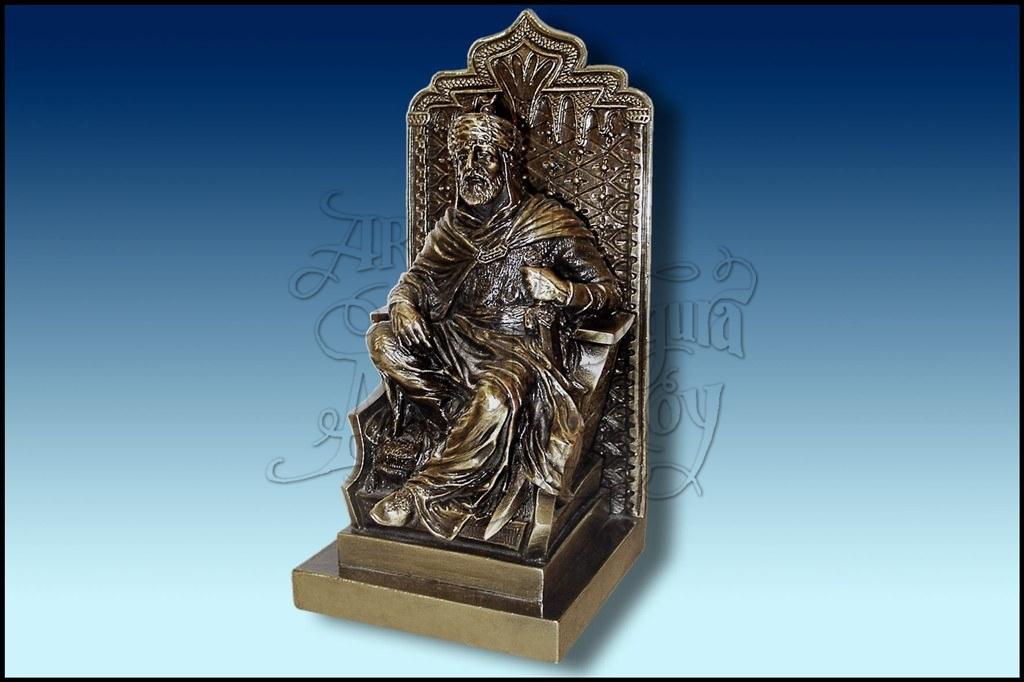 Figura representativa de Al-Azraq, sentado en su trono. Se puede utilizar como figura decorativa o apoyalibros. Realizada en resina, acabado en bronce.