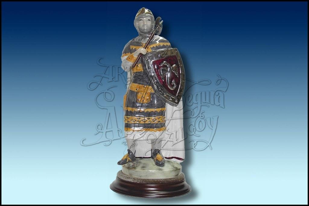 Figura representativa de la indumentaria de la Filá Guzmanes de Alcoy. Realizada en porcelana, pintada a color.