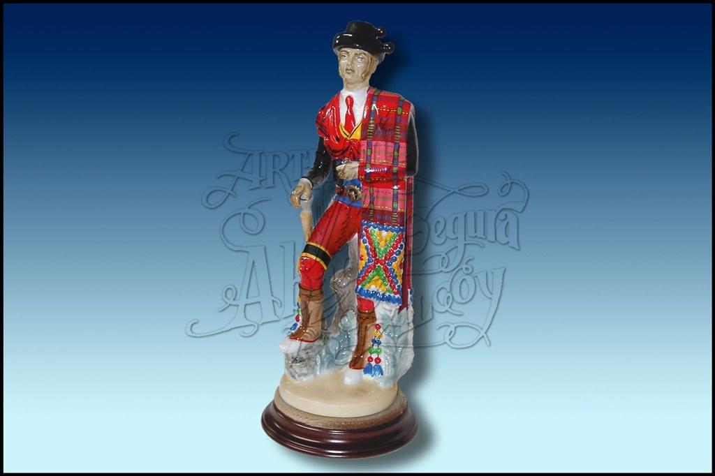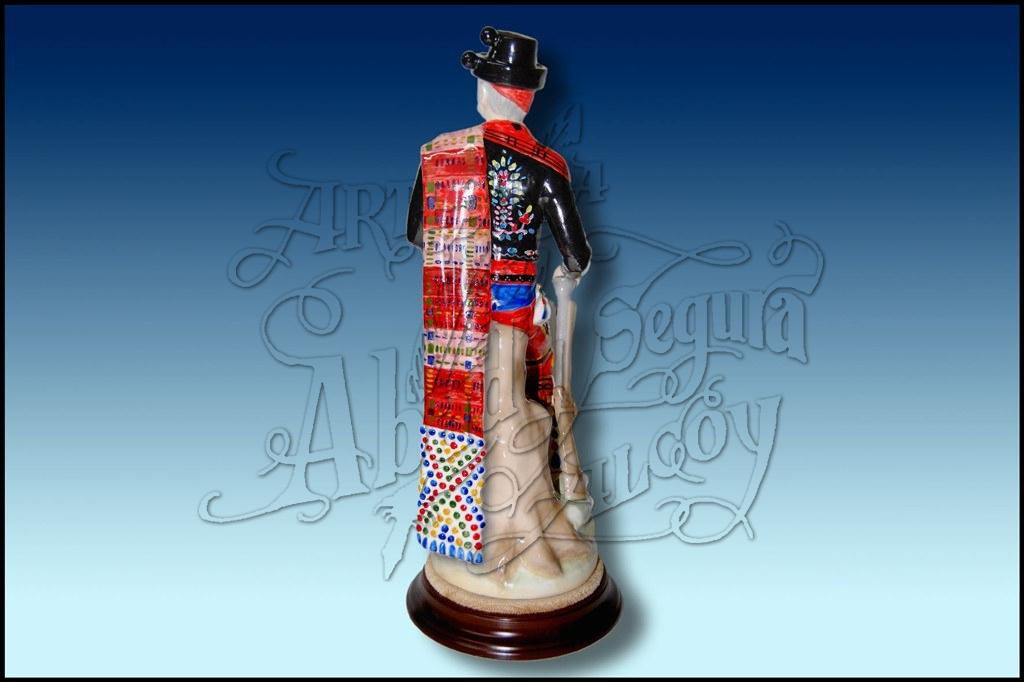 Figura de porcelana a color pintada a mano de la Filá Andaluces de Alcoy. Sobre peana redonda. Posibilidad de placa con inscripción.