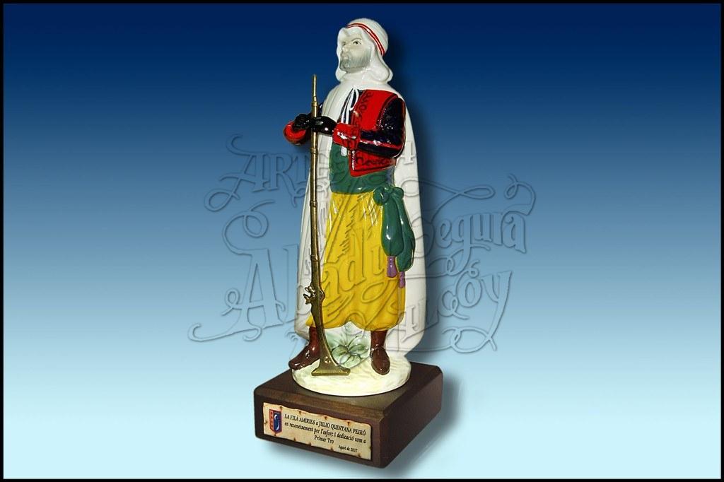 Figura representativa de la indumentaria de la de la Filá Llana de Alcoy. Realizada en porcelana y pintada a mano.