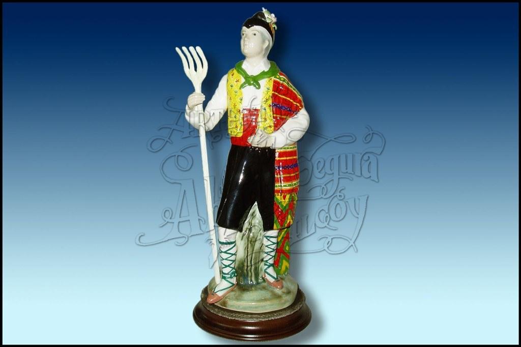Figura representativa de la indumentaria de la Filà Maseros de Banyeres. Realizada en porcelana, pintada a mano a todo color. Sobre base de madera (redonda o cuadrada, a elegir)