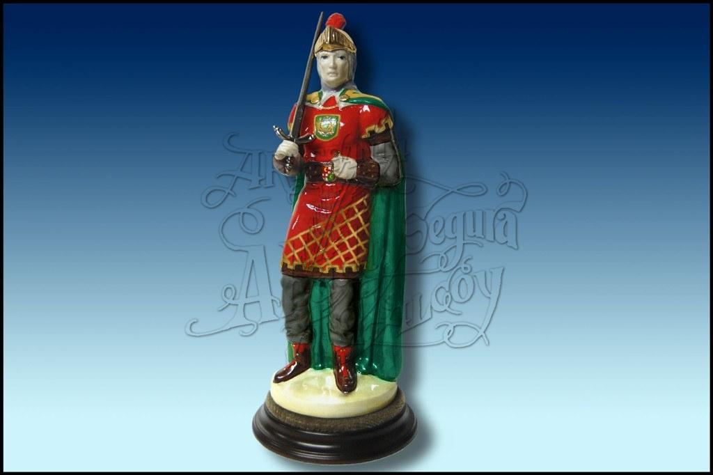 Figura representativa de la indumentaria de la Filà Cristians de Banyeres. Realizada en porcelana, pintada a mano a todo color. Sobre base de madera (redonda o cuadrada, a elegir)