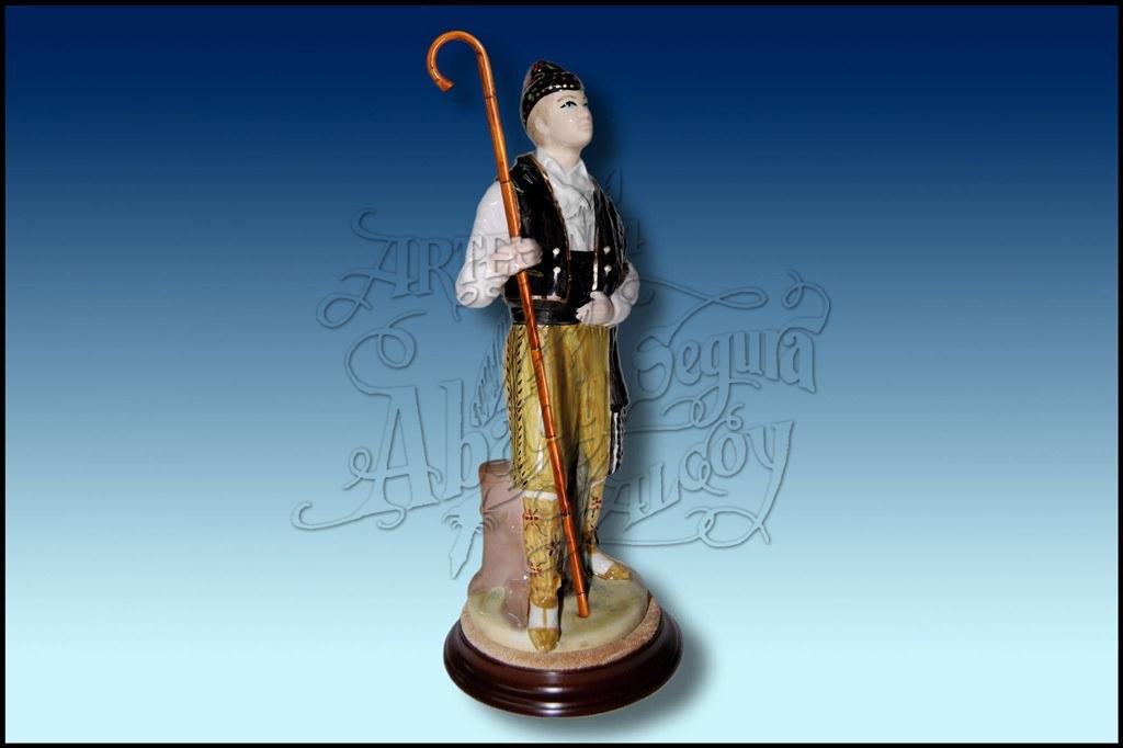Realizada en porcelana, pintada a mano a todo color, con gayato metalico imitando a madera. Sobre peana redonda. Posibilidad de placa con inscripción.