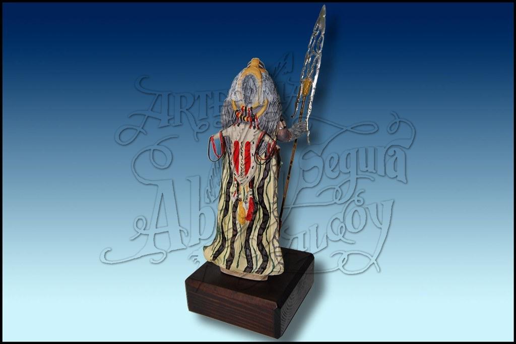 Realizada en resina, sobre base de marmol o madera (a elegir). Decorada a mano. Arma realizada en metal.