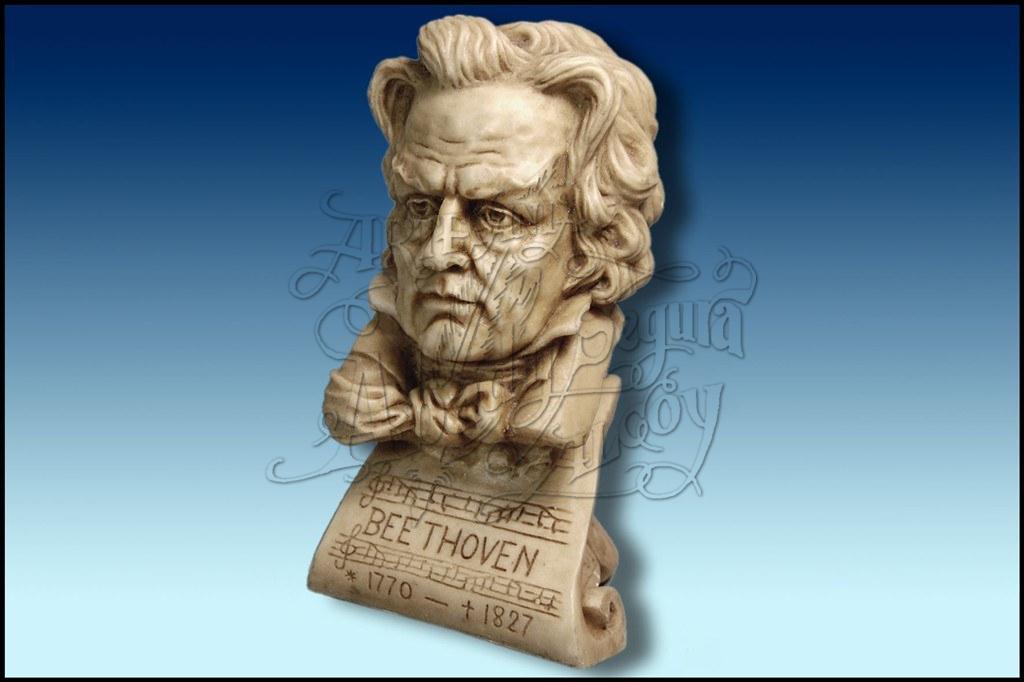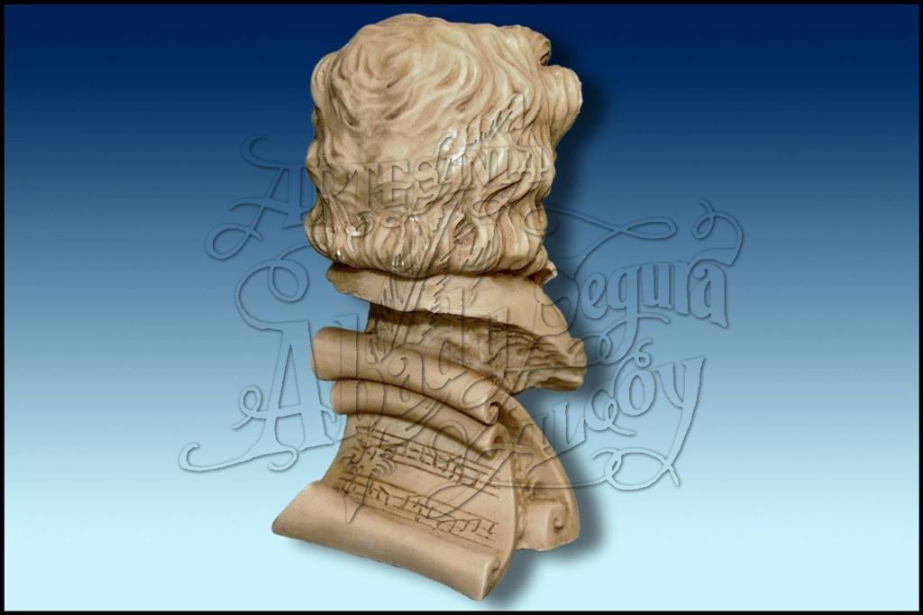 Figura del busto del musico y compositor Beethoven. Realizado en resina, acabado en tono marfil.