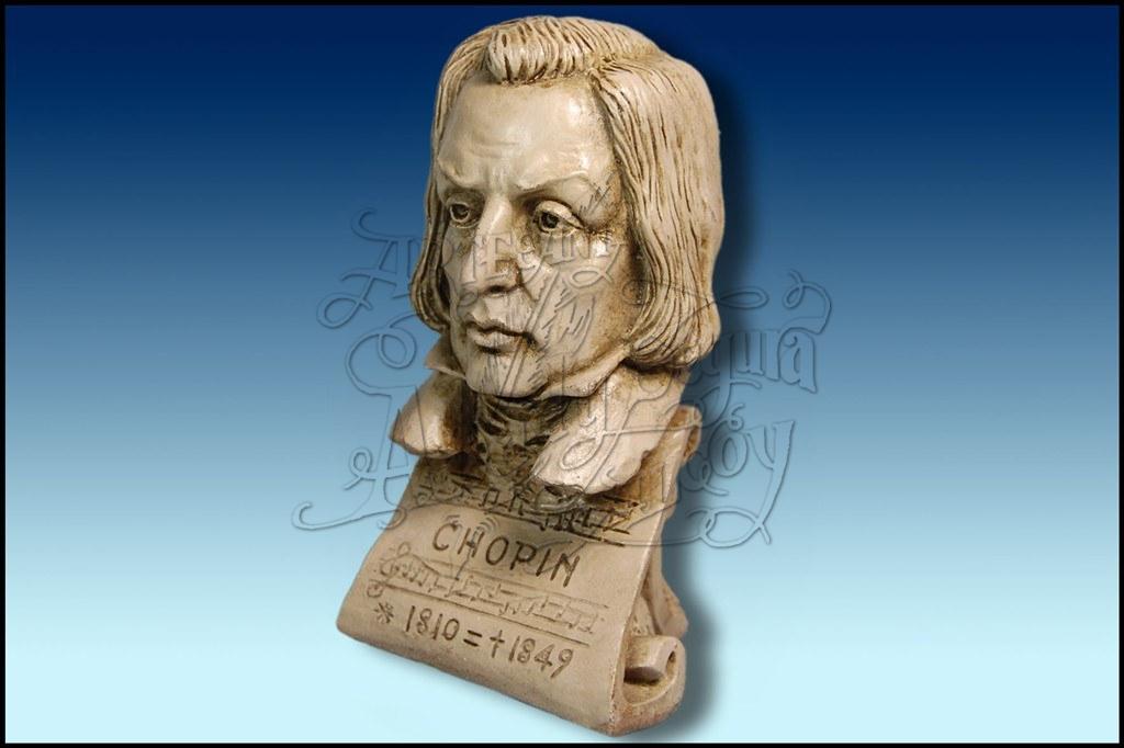 Bustos de 15 cm. altura: Bach, Serrano, Wagner, Brahms, Chapi, Mozart, Strauss, Tárrega , Beethoven, Verdi y Chopin.