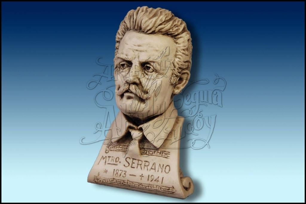 igura del busto del musico y compositor José Serrano Simeón (Maestro Serrano). Realizado en resina, acabado en tono marfil.