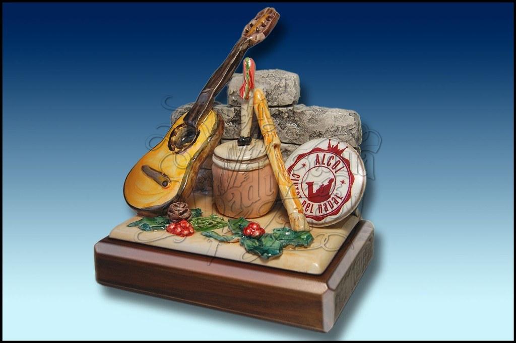 Figura alegorica con instrumentos musicales. Se pueden personalizar, poniendo los instrumentos que se deseen. Se puede incluir un logotipo o cualquier otro elemento.