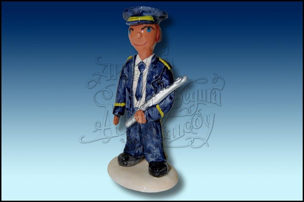 Figura representativa de un musico con flauta. Realizada en cerámica, pintada a mano, a todo color.