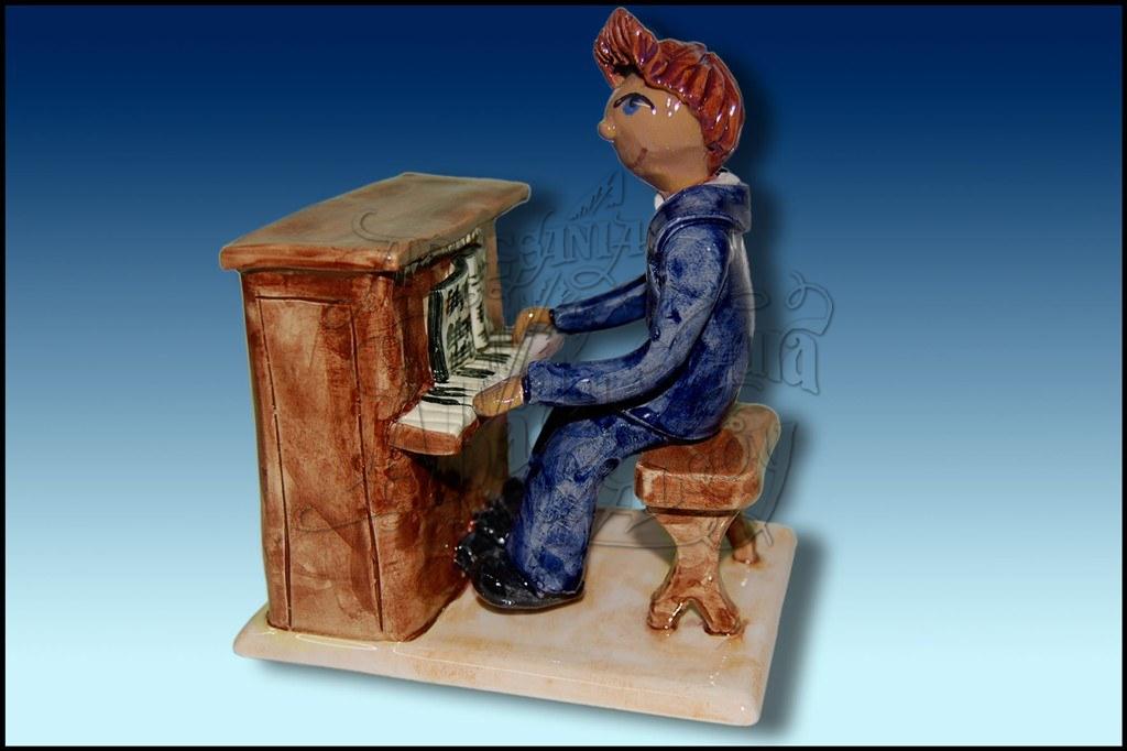 Figura representativa de un pianista. Realizada en cerámica, pintada a mano, a todo color.