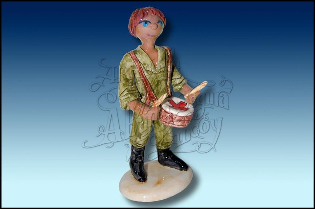 Figura del Tamborilero de la Cruz Roja. Realizada en cerámica, pintada a mano, a color.