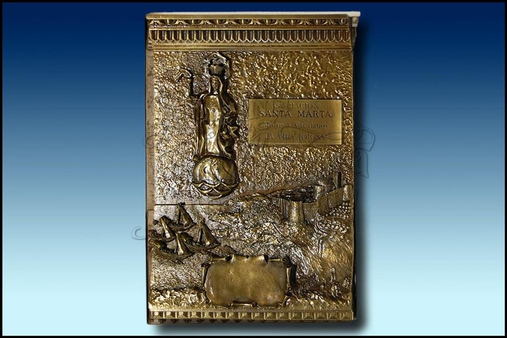 Bajorrelieve representativo de la imagen de Santa Marta. Colocado sobre un friso representativo de la ciudad amurallada de La Vila Joiosa y su desembarco.