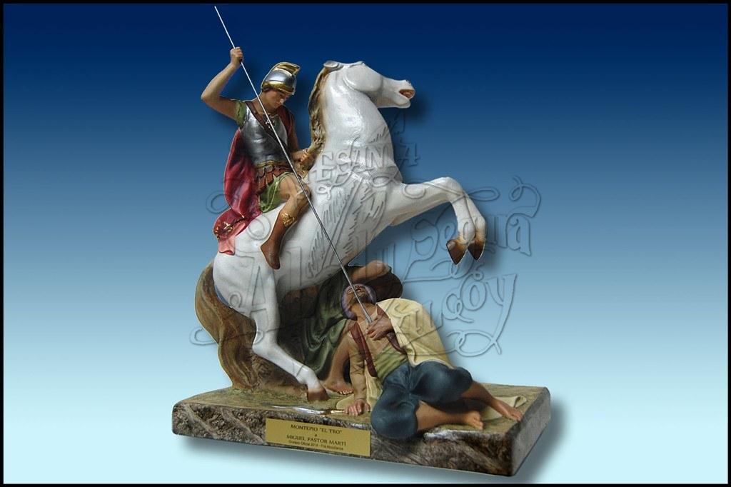 Imagen de San Jorge (a caballo) realizada en pasta cartón madera, siguiendo el mismo proceso artesanal desde 1880.