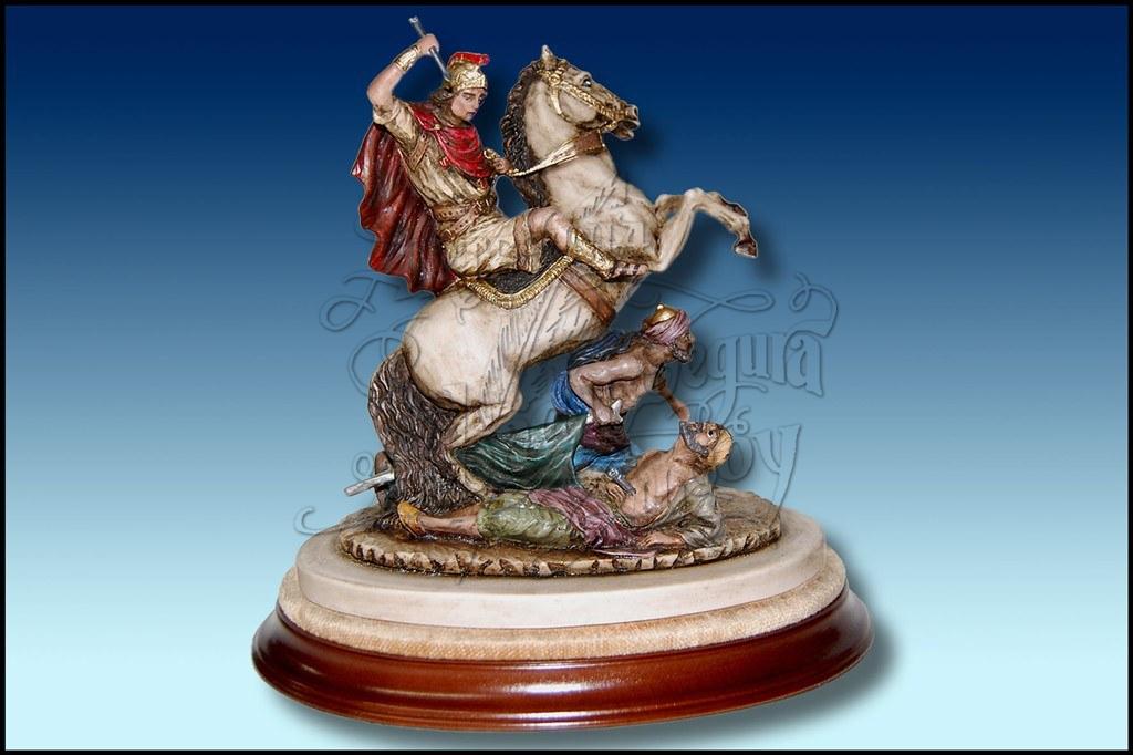 Reproducción a escala de la figura de San Jorge. Realizada en resina y pintada a mano, a color.
