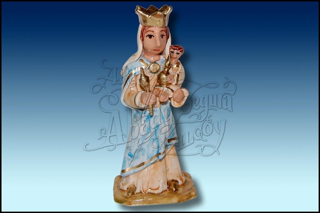 Figura de la Virgen María Reina del Cielo. Realizada en cerámica y decorada a mano.