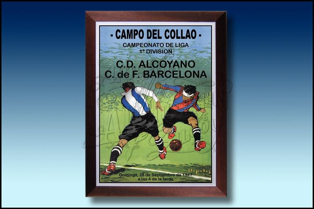 Reproducción del cartel del C. D.Alcoyano contra el F.C. Barcelona del año 1947, cuando en Alcoyano estaba en 1ª División.