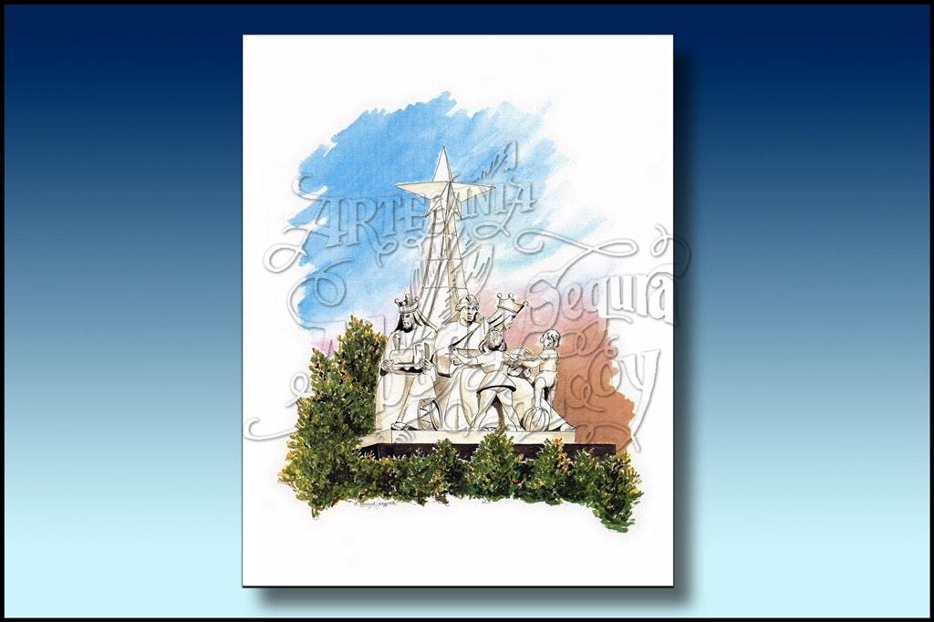 Lamina del Monumento a los Reyes Magos, situado en Ibi. Fue inaugurado en 1975. Se encuentra en la plaza a la que da nombre.