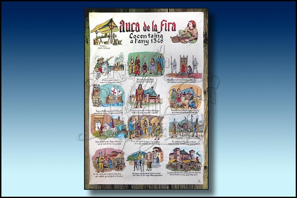 Lámina del Auca relatando motivos e historia de la concesión de la Fira de Cocentaina por parte del Rey Pedro IV de Aragón a su tío Alfonso Roger de Lauria y Xerica.