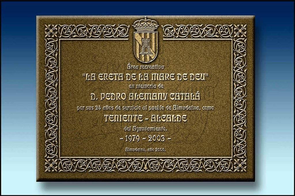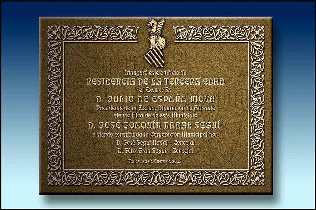 Placa de metacrilato para inauguraciones. Preparada para ser atornillada en la pared, con embellecedores.