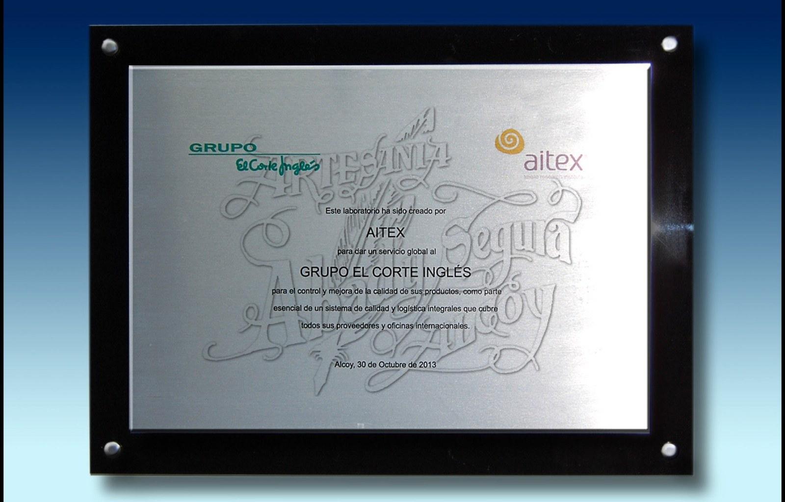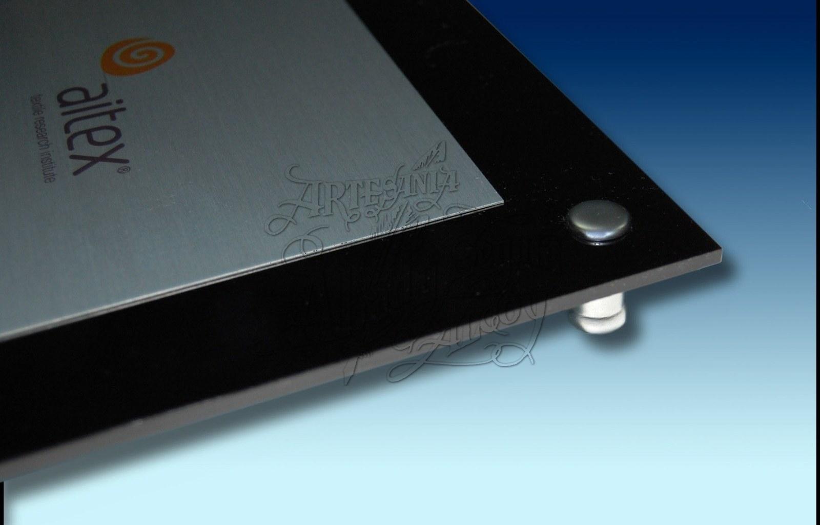 Placa de metal sobre metacrilato negro, especial para inauguraciones, agradecimientos, etc.