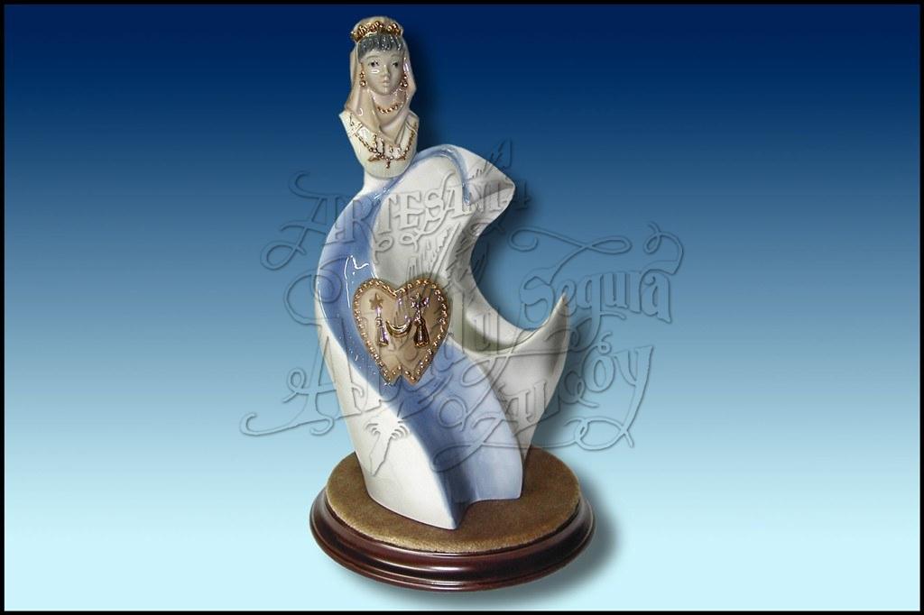 Realizada en porcelana, a color a las sales, pintada a mano. Tambien disponemos de bustos Rey moro o cristiano y de 28 bustos de las indumentarias de las Filaes de Alcoy.