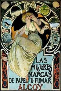 Postal del cartel publicitario del papel de fumar de las empresas Laporta Valor. Papel de fumar Blanco y Negro.