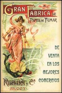 Postal del cartel publicitario de la Gran Fabrica de papel de fumar "Ridaura y Cia" de Alcoy.