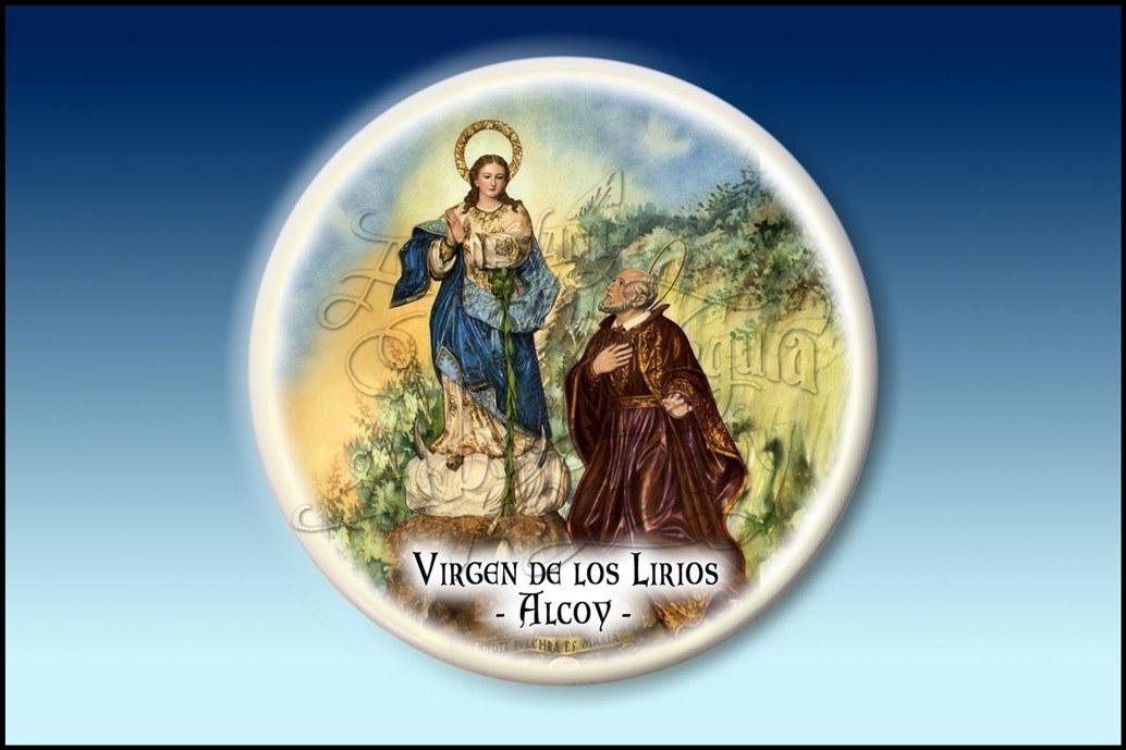 Iman con la imagen de la Virgen de los Lirios. Realizada en cerámica.