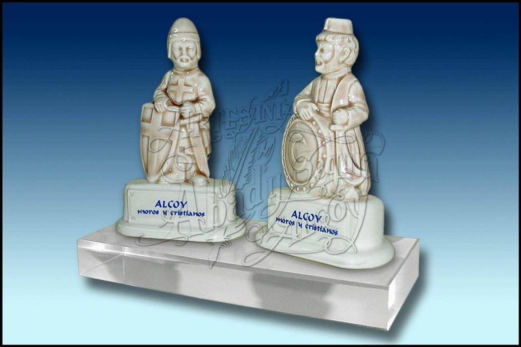 Conjunto de una figura de un moro y un cristiano sobre metacrilato. También puede ser base de madera.