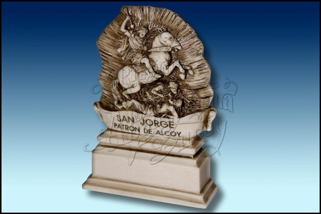 Figura en bajorrelieve de San Jorge a caballo. Realizada en resina, acabado marfil