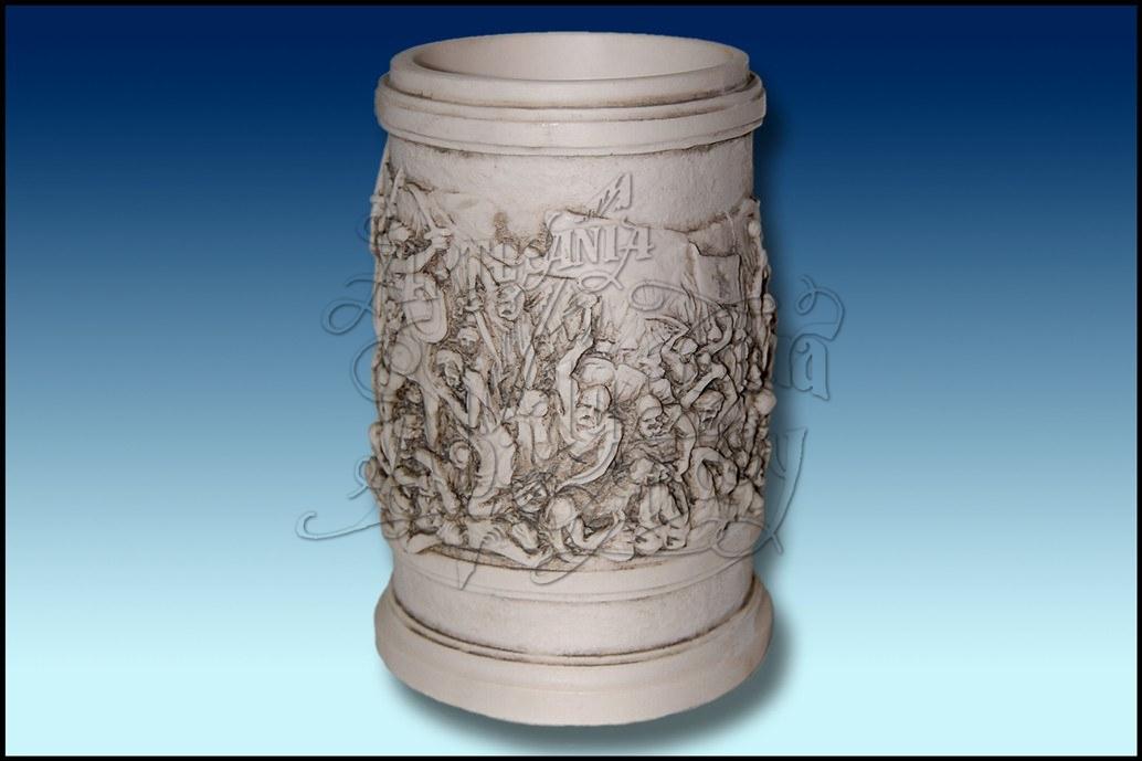 Bote posalapices con bajorrelieve representativo de una batalla, entre moros y cristianos.