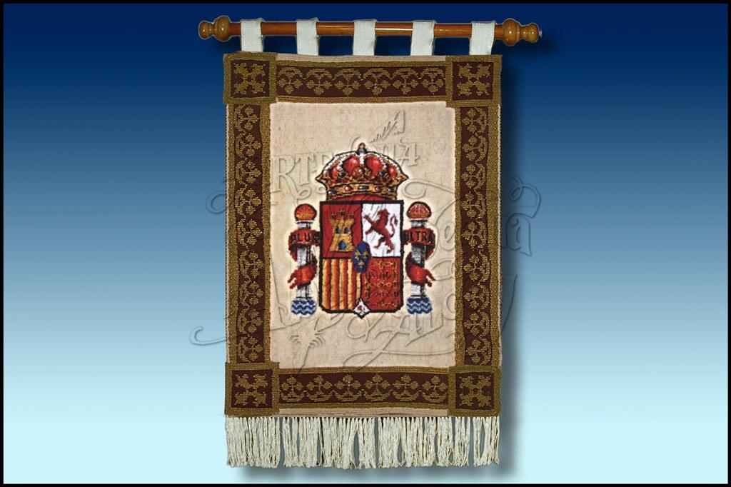 Tapiz con el escudo actual de España, aprobado en 1981. Con cenefa alrededor