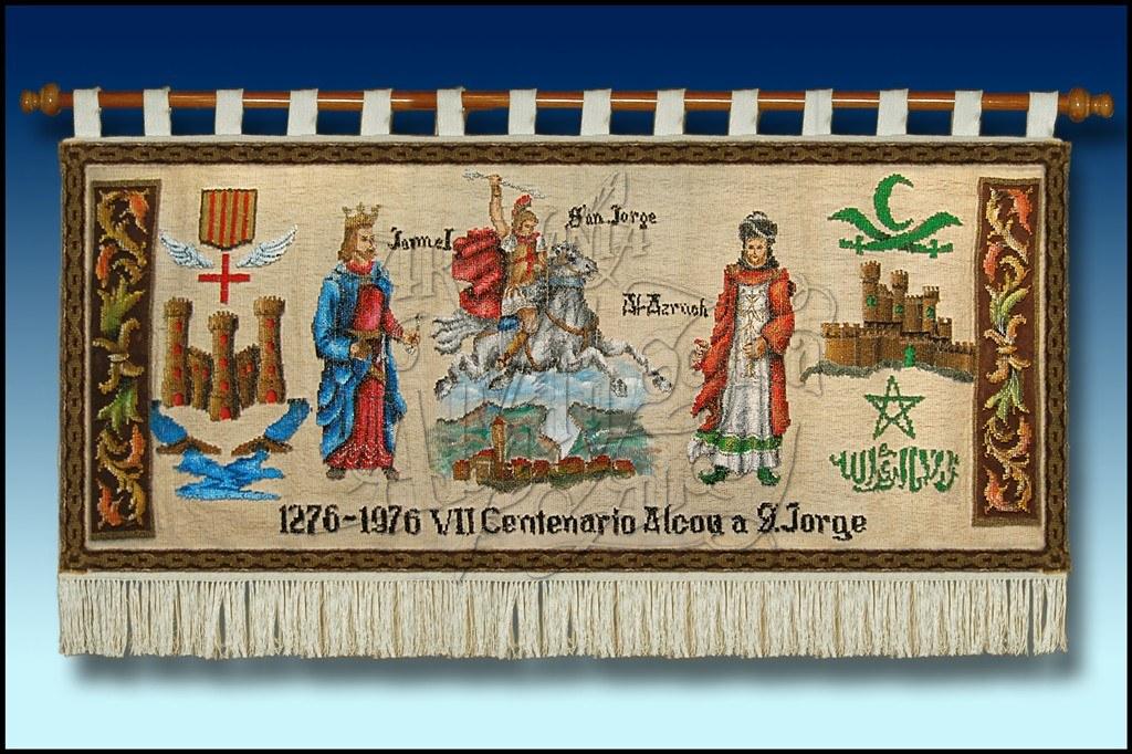 Realizado en conmemoración del VII Centenario de San Jorge. 1276 - 1976. Con las figuras representativas de Jaume I y Al-Azraq, y el escudo del Alcoy.