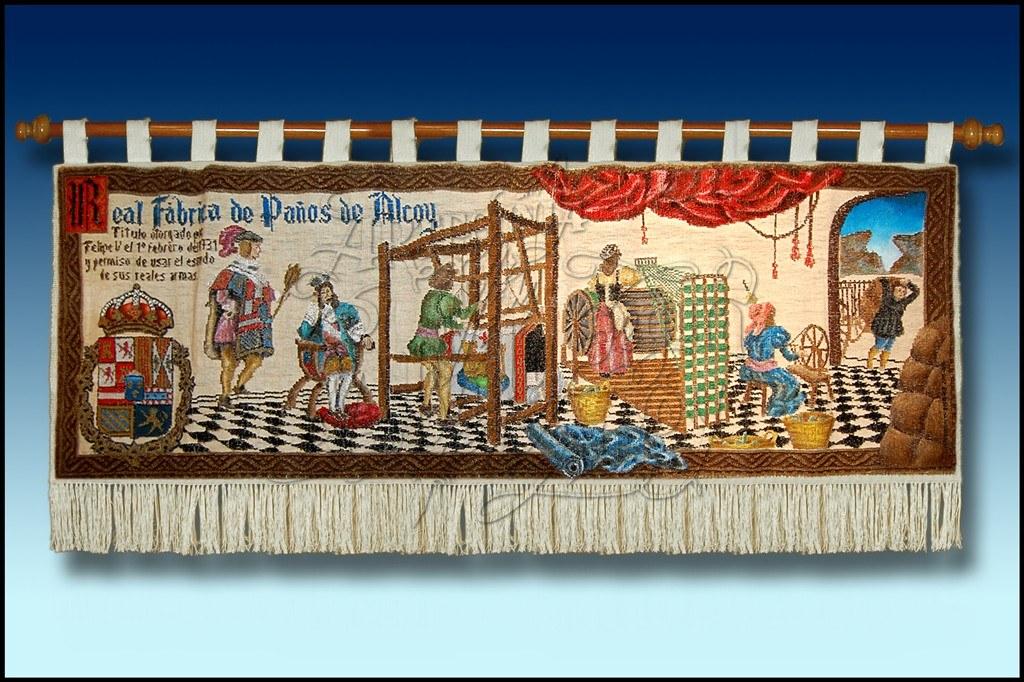 Escena de Felipe V, otorgando el Titulo a la Real Fabrica de Paños de Alcoy, para poder utilizar el escudo de sus armas, en 1731.