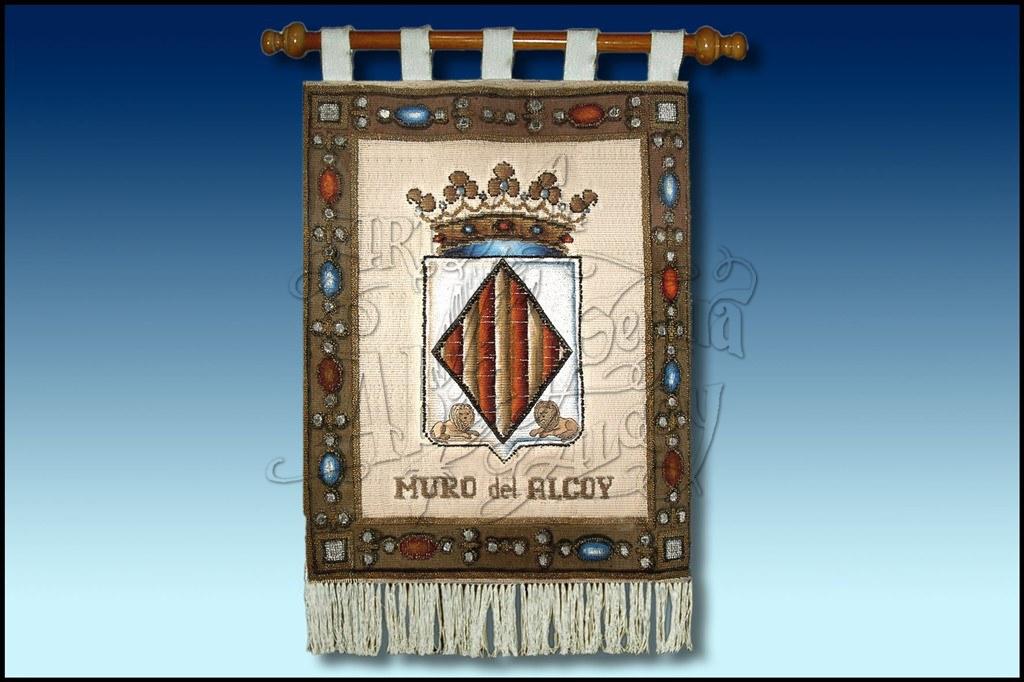 Tapiz con el escudo de Muro (Alicante). Con cenefa alrededor.