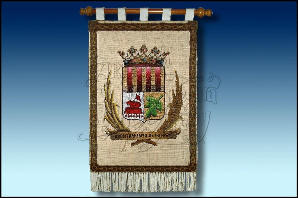 Tapiz con el escudo de Rótova. Con cenefa alrededor.