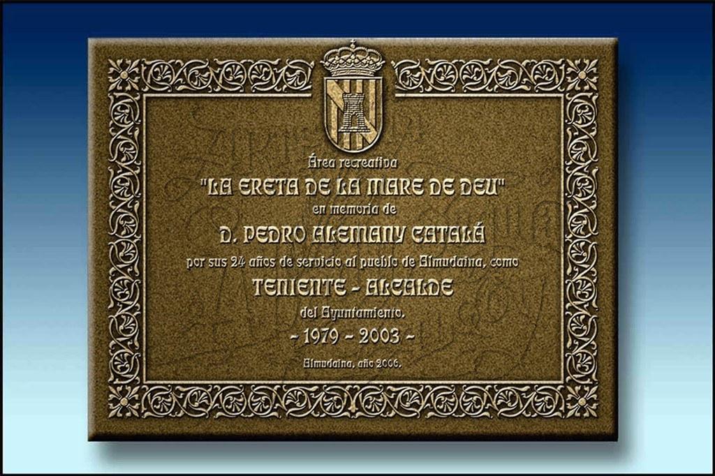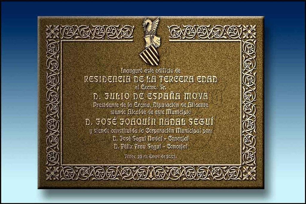 Placa de metacrilato para inauguraciones. Preparada para ser atornillada en la pared, con embellecedores.