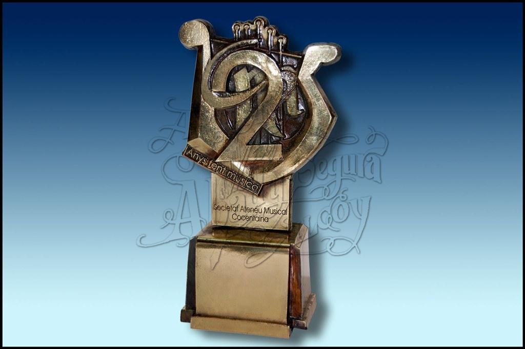 Obsequio con lira, logo o escudo de Entidad Musical. Regalo institucional para conmemoraciones, jubilaciones, aniversarios, regalo de empresa, etc.Realizada en resina y bañada en bronce.